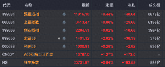 今日早盘,A股低开高走,上证指数再度挑战3400点,深证成指冲上11000点,科创50指数也围绕1000点展开激烈争夺,沪深300则死守4000点大关。1小时成交超过万亿元。